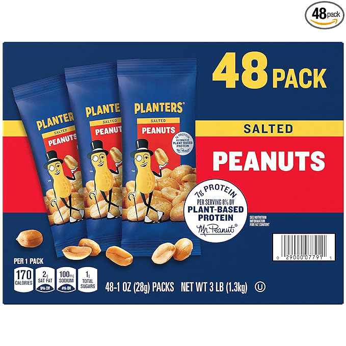 PLANTERS Salted Peanuts, 1 oz. Bags (48 Pack) - Snack Size Peanuts with Sea Salt